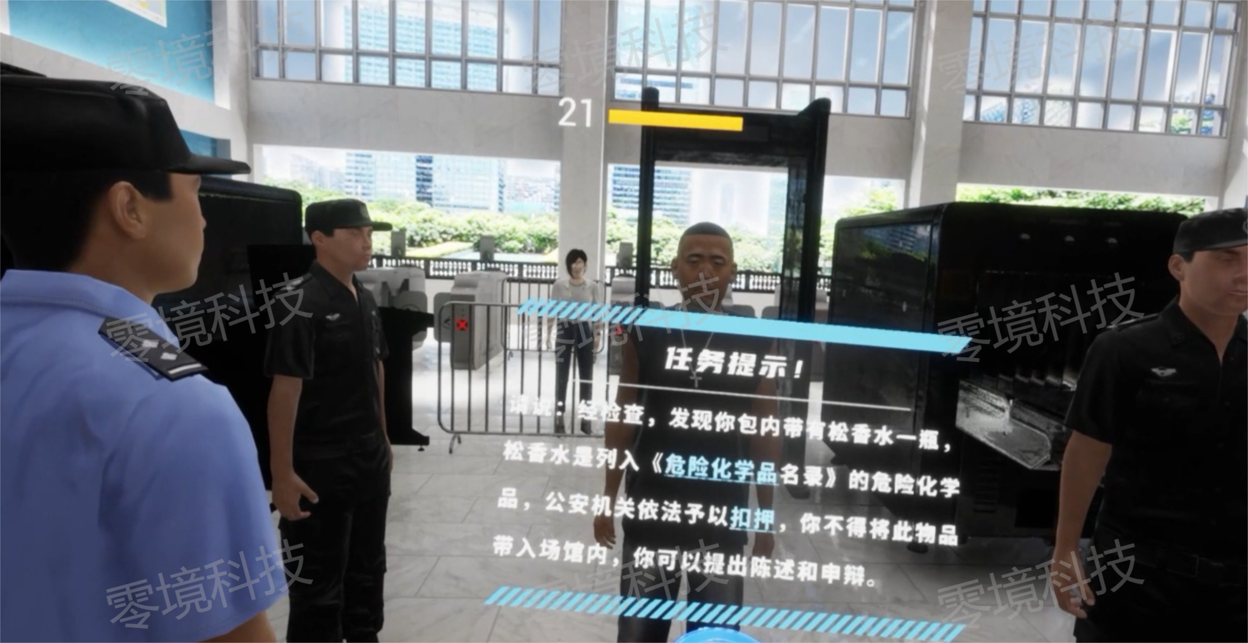 VR暴力抗检系统通过三维建模、动态渲染与物理引擎技术,构建出毫米级精度的虚拟执法环境。以交通执法场景为例,系统不仅还原了道路纹理、车辆细节,还模拟了轮胎与路面的摩擦声、引擎轰鸣声,甚至动态天气变化——暴雨中雨水模糊视线、沙尘暴中能见度骤降,警务人员需在低可视条件下完成车辆拦截、证件查验等标准动作。在安检场景中,系统可生成机场、快递站等典型环境,模拟金属探测仪的蜂鸣、X光安检机的图像闪烁,以及人群嘈杂声等干扰因素,使训练贴近实战。