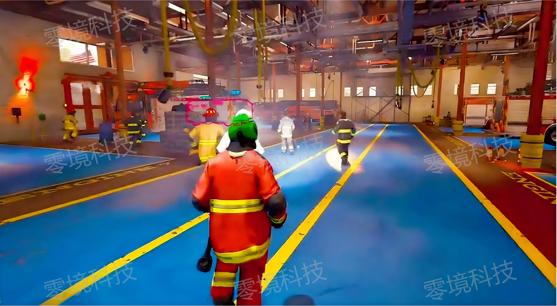 - 班组协同训练 系统支持4-12人同步在线,通过分布式计算与AI行为树技术,构建指挥层、作战层、保障层的多角色协同体系。在模拟“飞机货舱锂电池自燃”场景中,消防员需分组作战:上层救援组用细水雾灭火系统控制火势,下层疏散组通过逃生滑梯转移被困乘客,医疗组在机翼下方建立临时救治点。系统实时评估协同效率,若破拆组未确认“灭火掩护到位”就切割机舱门,会触发“虚拟乘客受伤”警告,强制训练团队重新梳理沟通流程。