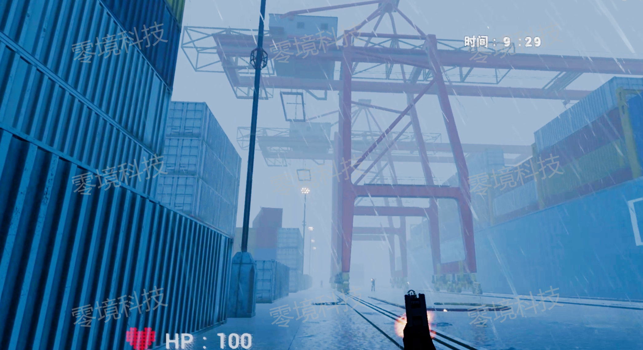 系统采用高精度三维建模技术,1:1还原港口码头全场景,精准复刻集装箱堆垛、岸桥吊机、码头通道、防波堤、货轮甲板等典型战术地形,细节还原码头设施的结构特点与隐蔽点位,为多人协同作战提供逼真的战术依托。重点打造暴雨天气仿真效果,还原大雨倾盆、视线受阻、地面湿滑、积水反光、设备湿滑等真实场景,搭配雷声、雨声、海浪声等环境音效,沉浸式还原暴雨环境下的作战氛围。